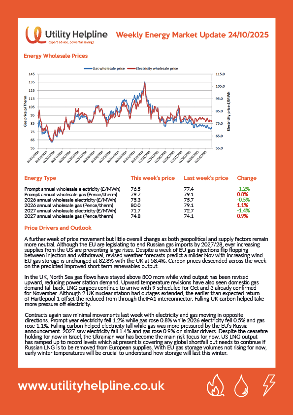 News Latest Energy Market Prices 24/10/2025 Published by Utility Helpline on 28th October 2025 Latest Posts TNUoS charges and the RAB LevyPublished on 28th October 2025 Business Energy Comparison in the UK: A 2025 GuidePublished on 21st October 2025 Latest Energy Market Prices 17/10/2025Published on 21st October 2025 Cut Your Business Energy CostsPublished on 29th September 2025 Switching Business EnergyPublished on 29th September 2025 Categories Latest News Business Energy Solutions Business Electricity Business Gas Testimonials Uncategorised Publican & Licensed Case Studies Publican & Licensed Market reports Business energy prices Talk to us about how we can save you moneyLive Chat NowDrop us a message