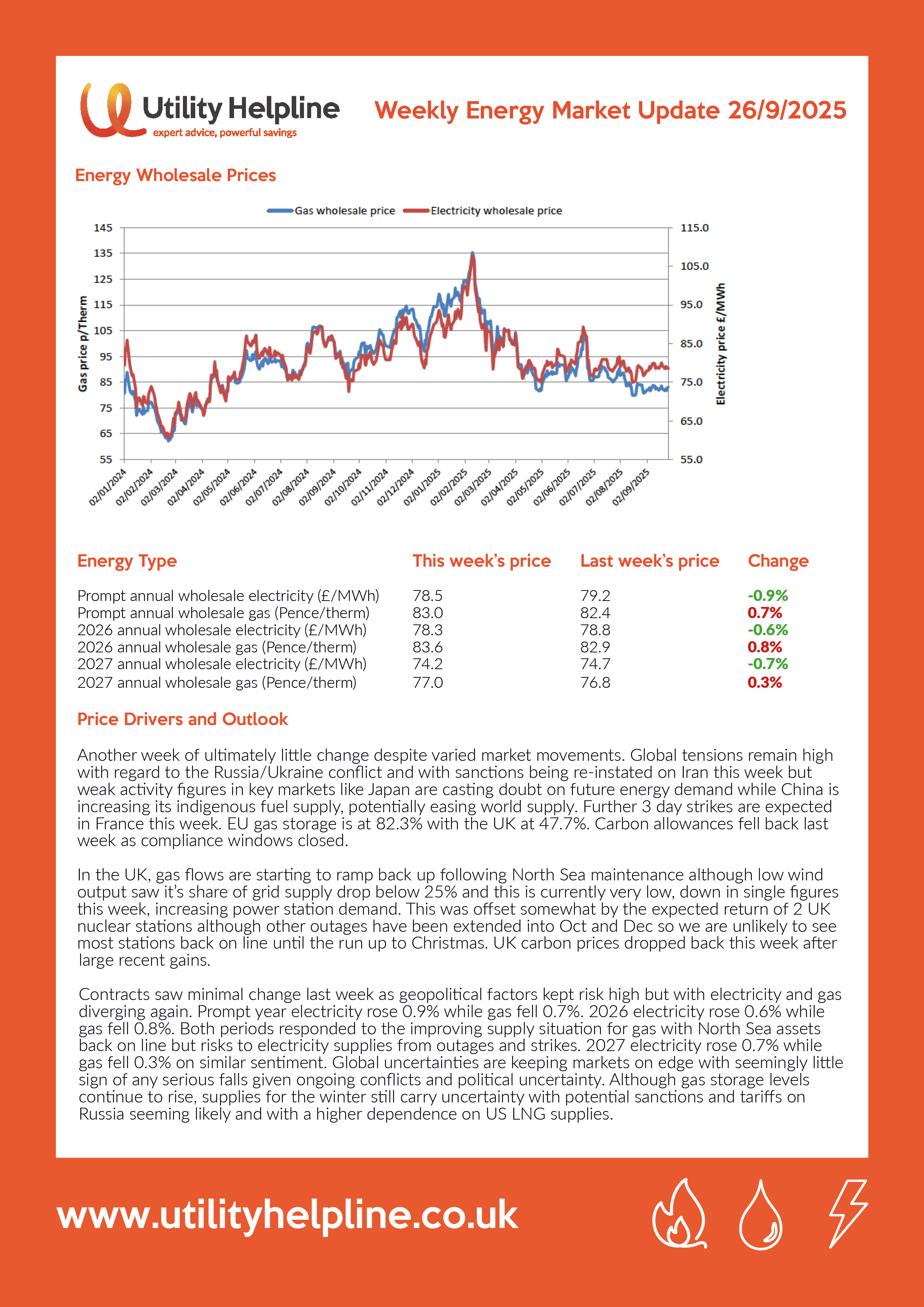 Latest Energy Market Prices 26/09/2025